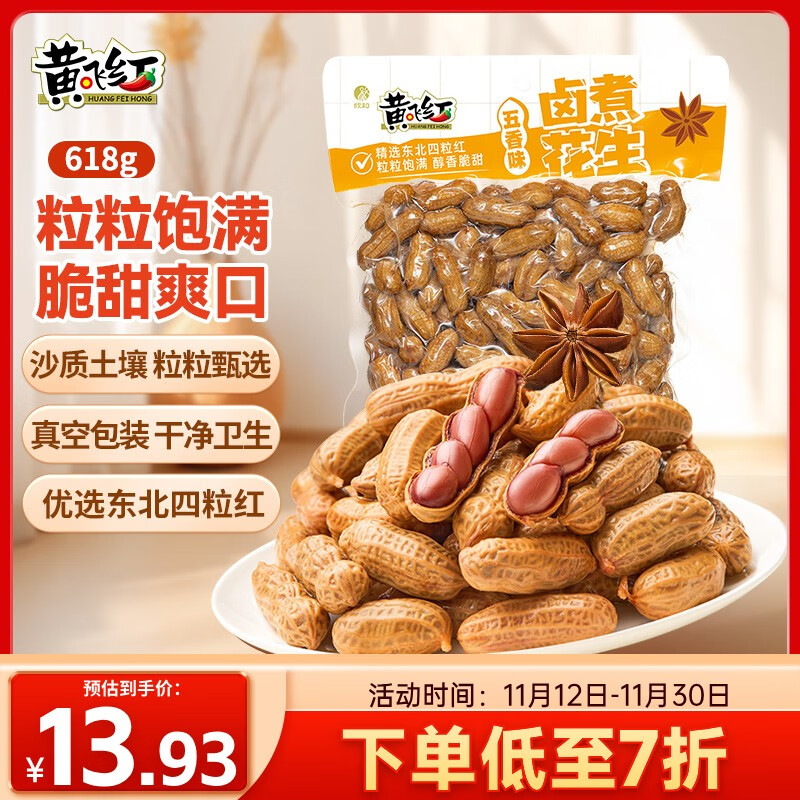 ,黄飞红(HUANGFEIHONG)卤煮花生五香味618g带壳3件3.98一