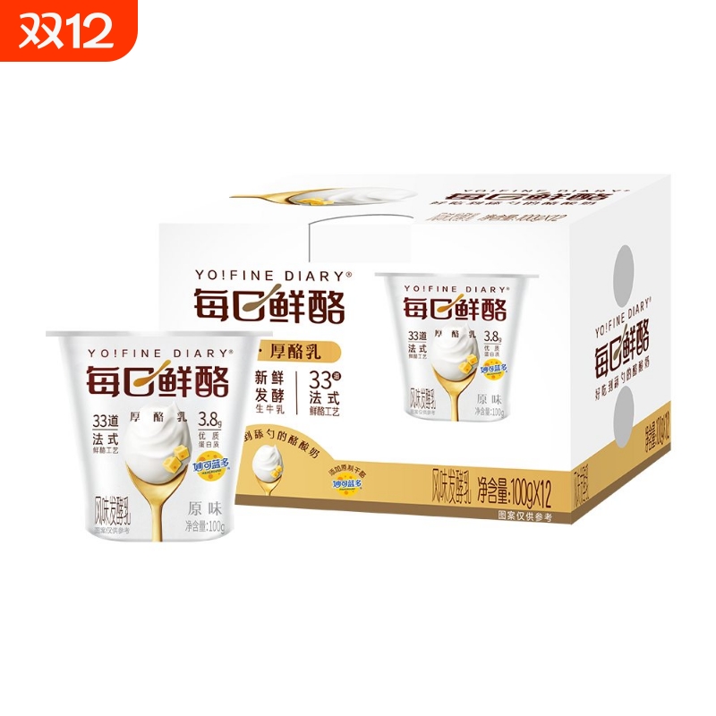 每日鲜酪低温酸奶原味100g*12杯