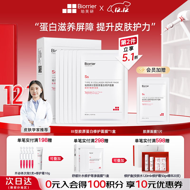 珀芙研Ⅲ型胶原蛋白修护面膜26ml*6