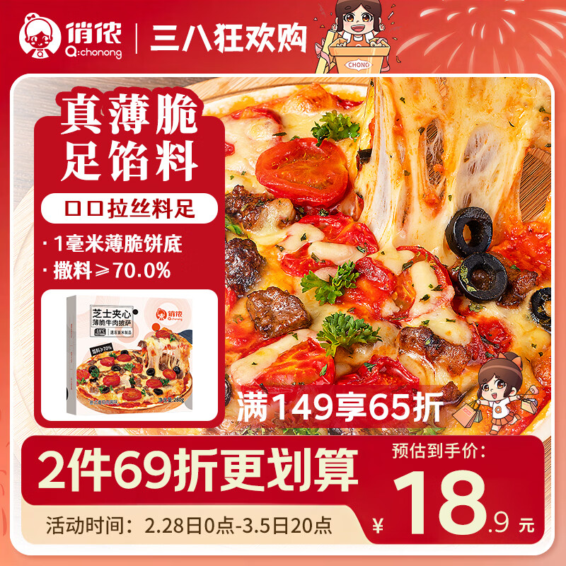 ,俏侬 芝心薄脆意式牛肉披萨280g/盒 5件凑后每件6.69 湊单