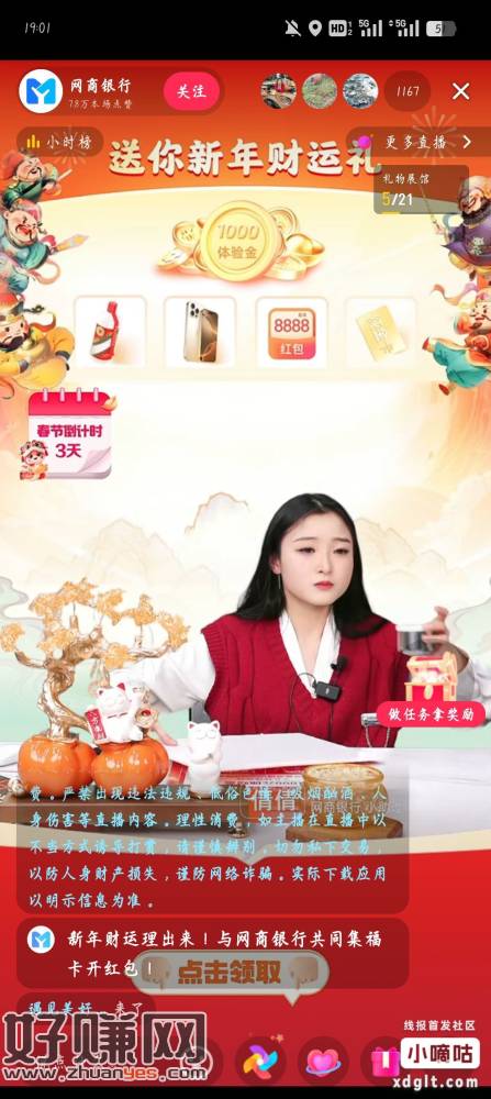 网上银行体验金,抖音搜索网商银行,直播间里点小风车
