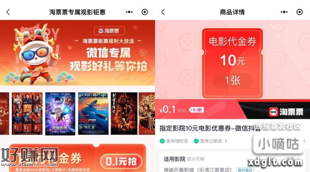 微信打开活动->直接0.1亓买10亓电影票券,所有电影都是通用的!