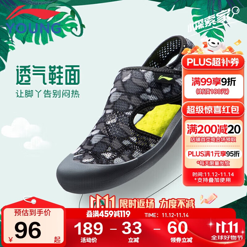 李宁童鞋 儿童凉鞋包头透气魔术贴 用200-20凑后27.24 凑2j